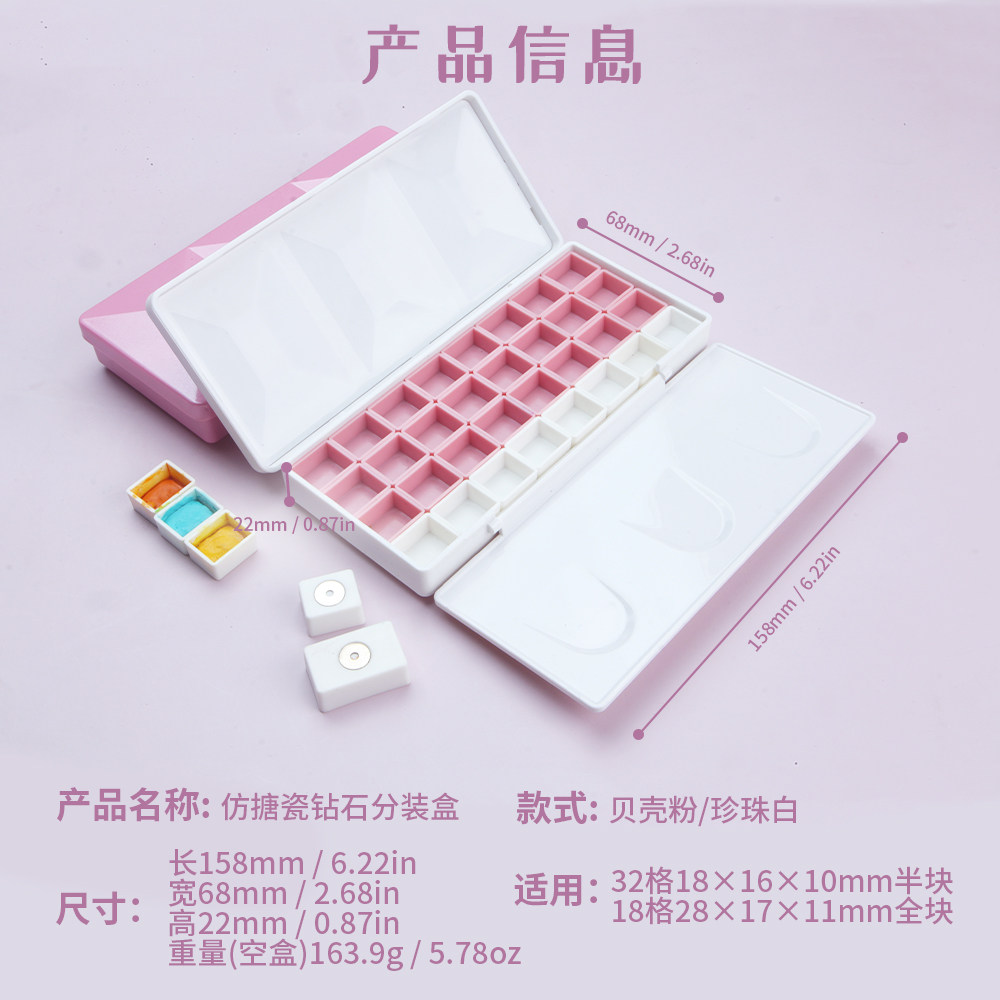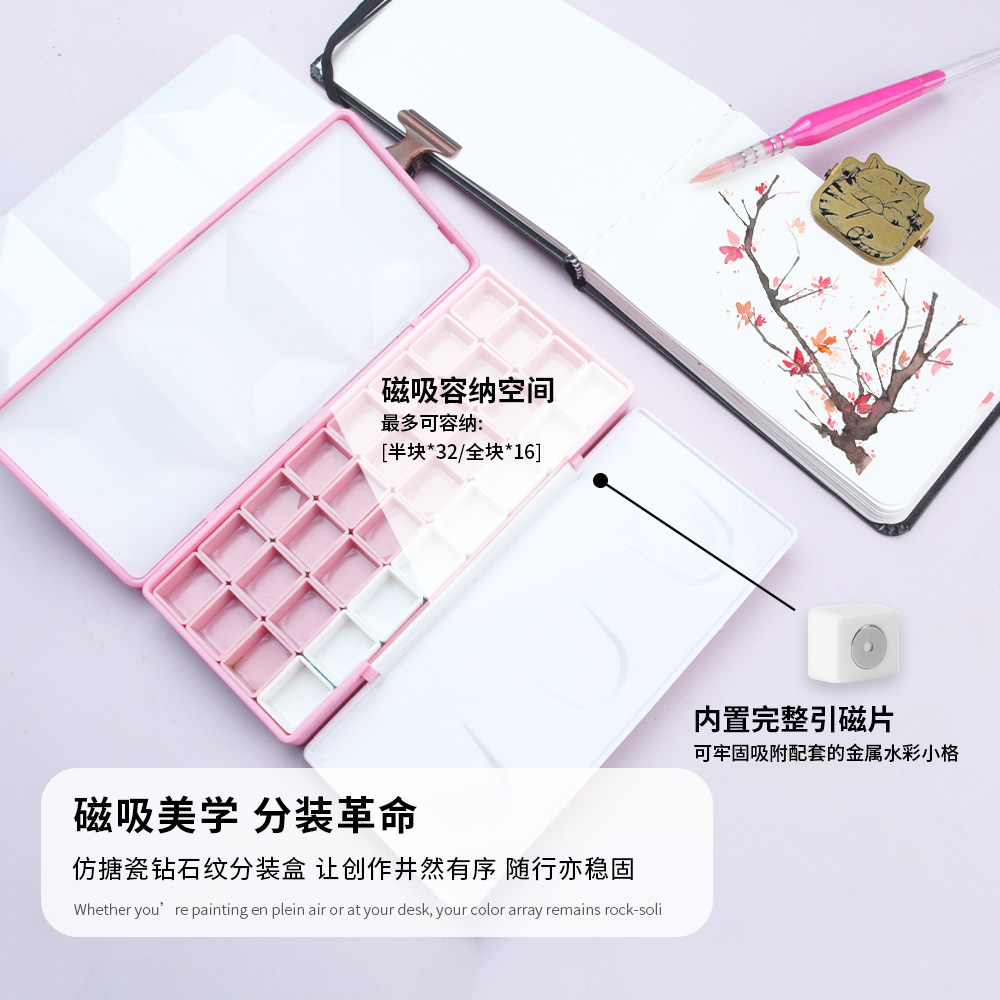 西米美术大号仿搪瓷钻石固体水彩颜料分装格可装2ml磁吸半块32块