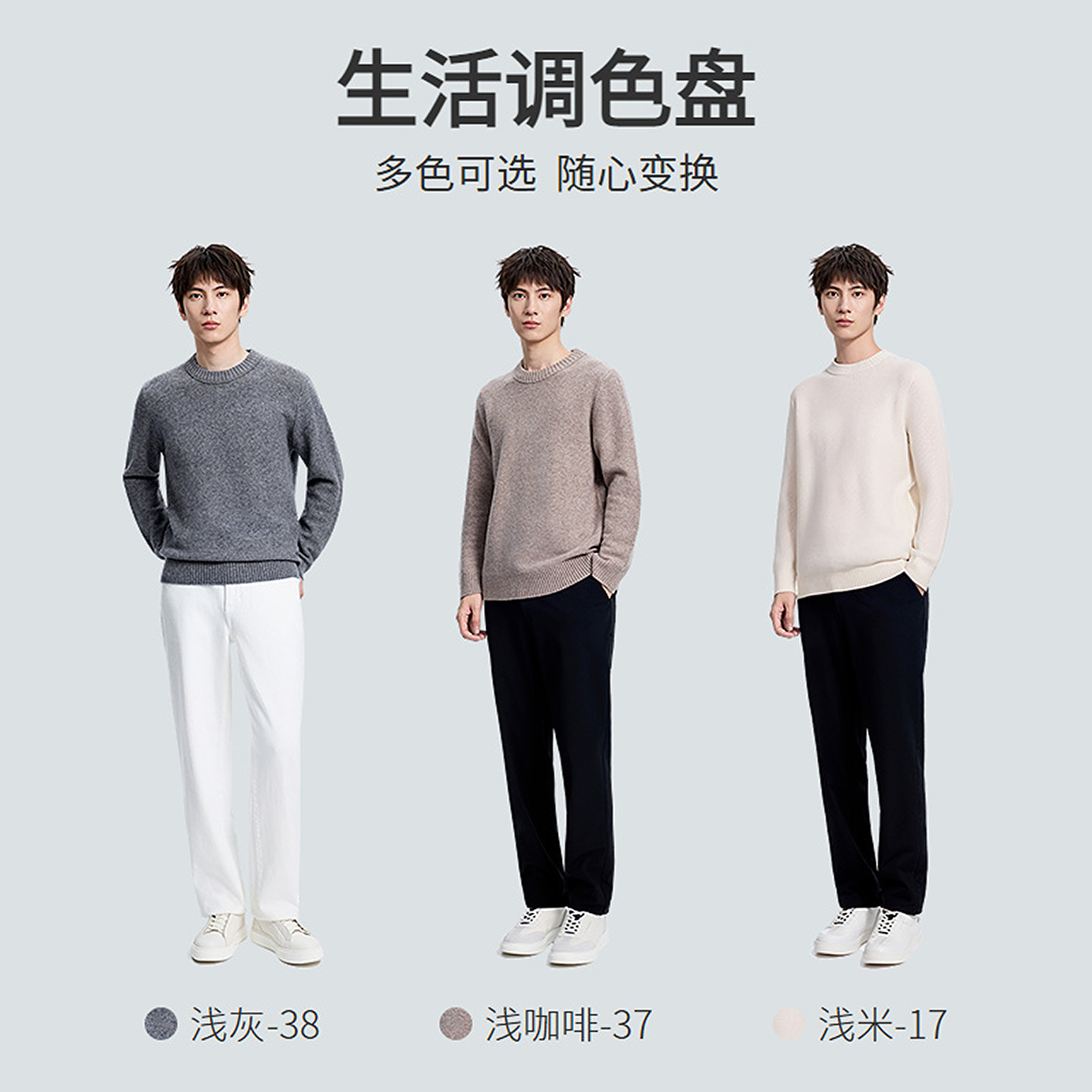 【台球运动系列】金利来新款男士粗针羊毛衫保暖圆领套头针织衫