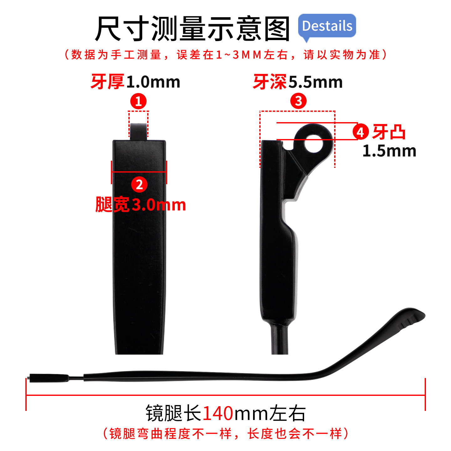 1mm单牙外牙眼镜腿升级全包长脚套镜框支架配件断裂修复替换更换