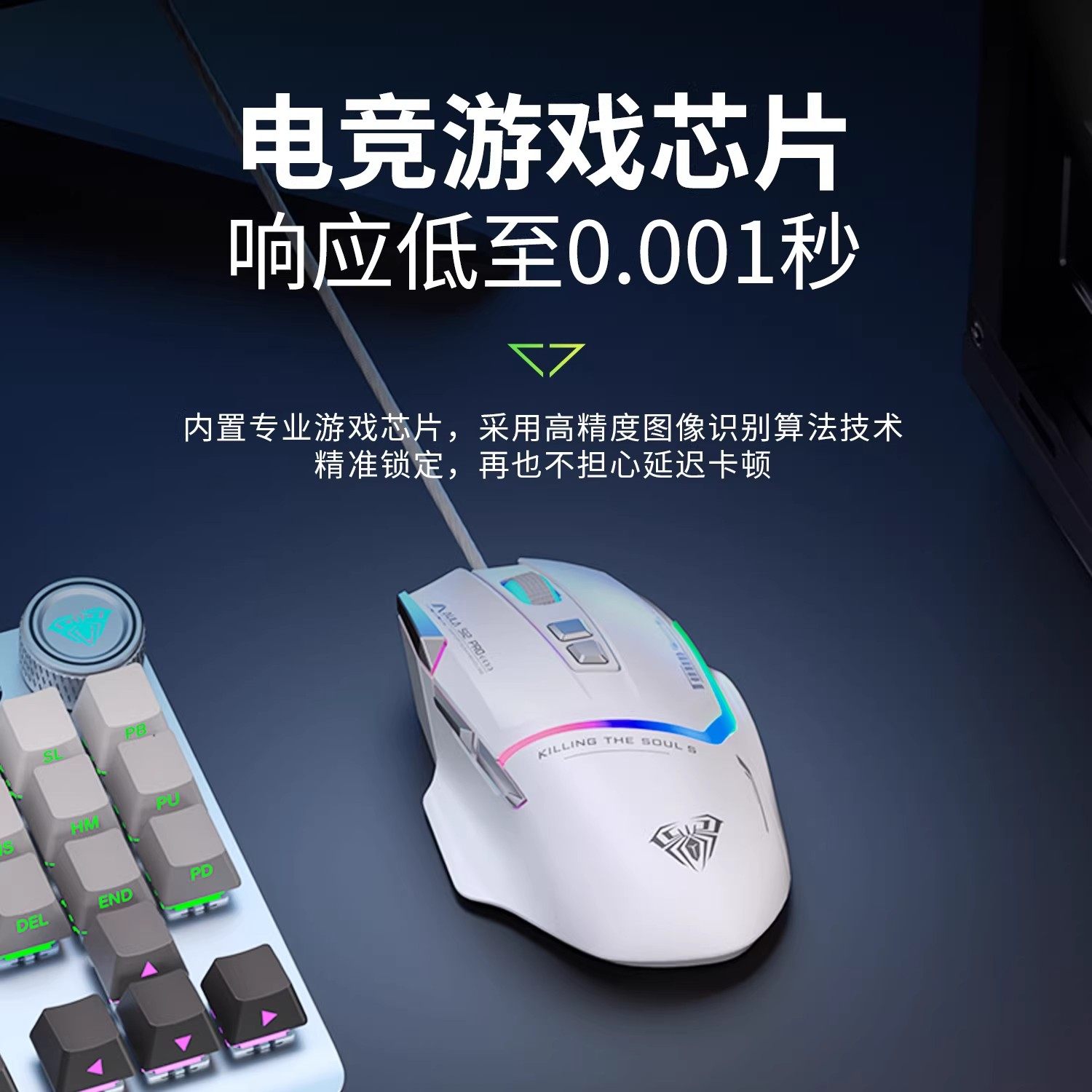 英菲克PW1有线鼠标静音游戏电竞机械宏办公usb台式笔记本电脑专用