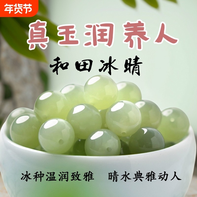 天然新疆和田玉晴水散珠子真品白玉碧玉水晶玉石diy手链手串男女