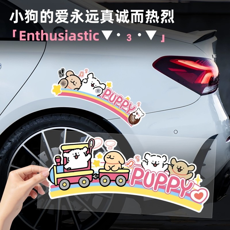 适用于卡通可爱小狗狗汽车轮眉装饰贴画个性创意划痕遮挡防水贴纸