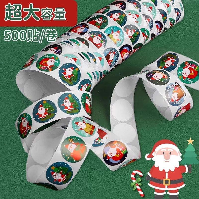圣诞贴纸幼儿园儿童奖励贴小学生平安夜卡通可爱雪花圣诞老人小贴画苹果礼物礼品包装纸圆形封口贴标签贴纸D1