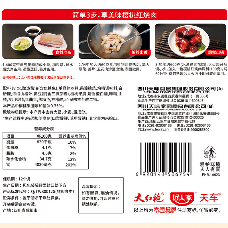 好人家樱桃红烧肉调料100g/袋 通用红烧排骨酱汁料包底料酱香糖醋
