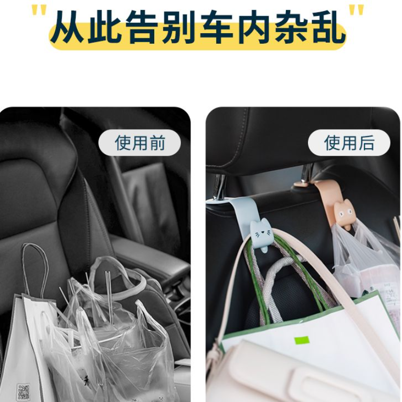 车载挂钩后排椅背卡通创意车用收纳挂钩可爱座椅内饰挂钩
