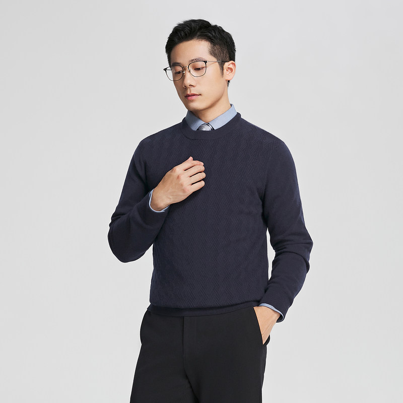 森马毛衫男冬季满版提花针织衫撞色毛衣宽松套头衫百搭提花潮-TK
