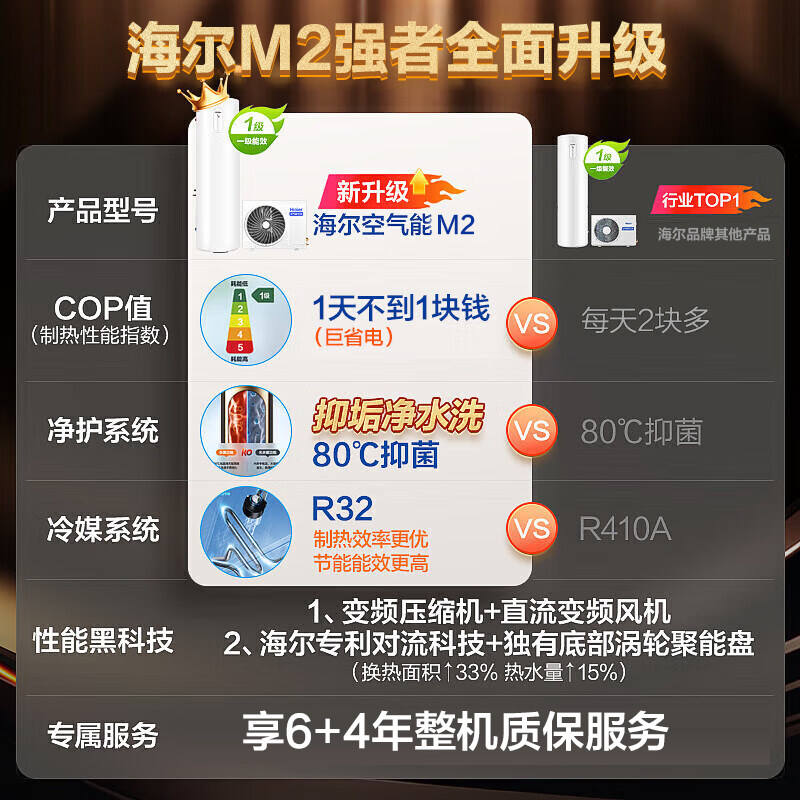 国补海尔空气能热水器家用一级能效变频200升L大容量300L自建房M2