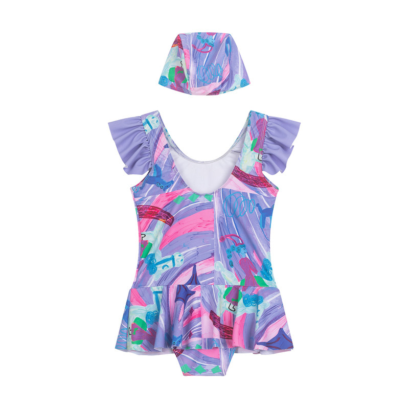 马拉丁儿童女童夏装新品贴身裙摆可爱浪漫主题印花清爽泳衣