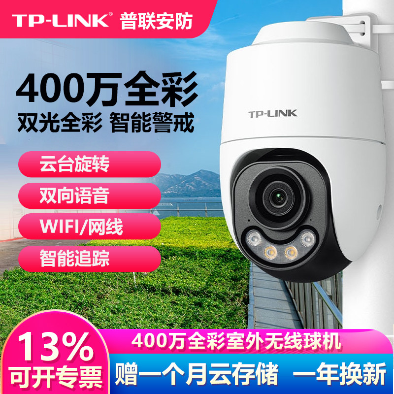 普联TP-LINK室外防水双光无线全彩摄像头AI智能报警4G全网通POE免费流量360度云台500万手机远程TL-IPC642X-A