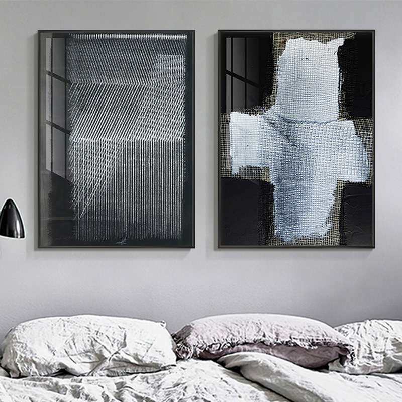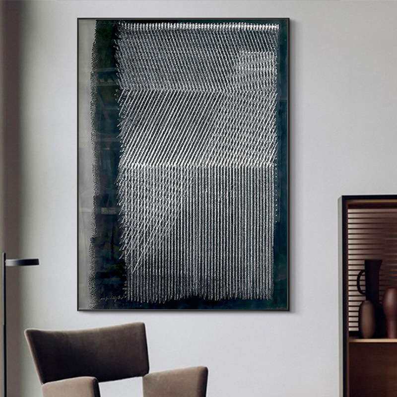 海因茨·马克冷色调抽象线条装饰画黑白工业风样板房后现代大幅画