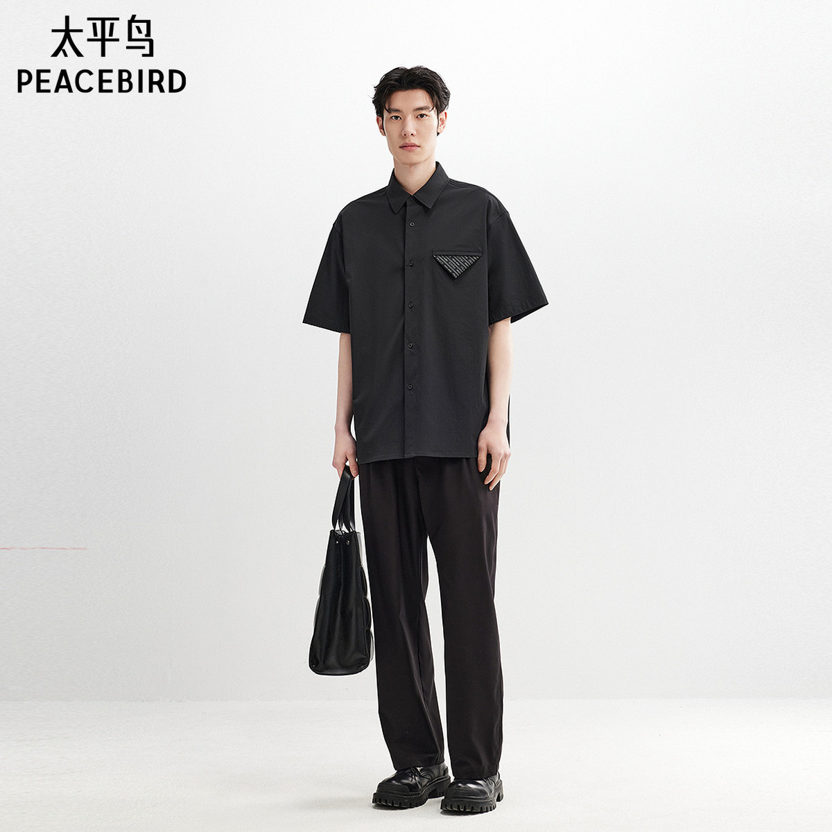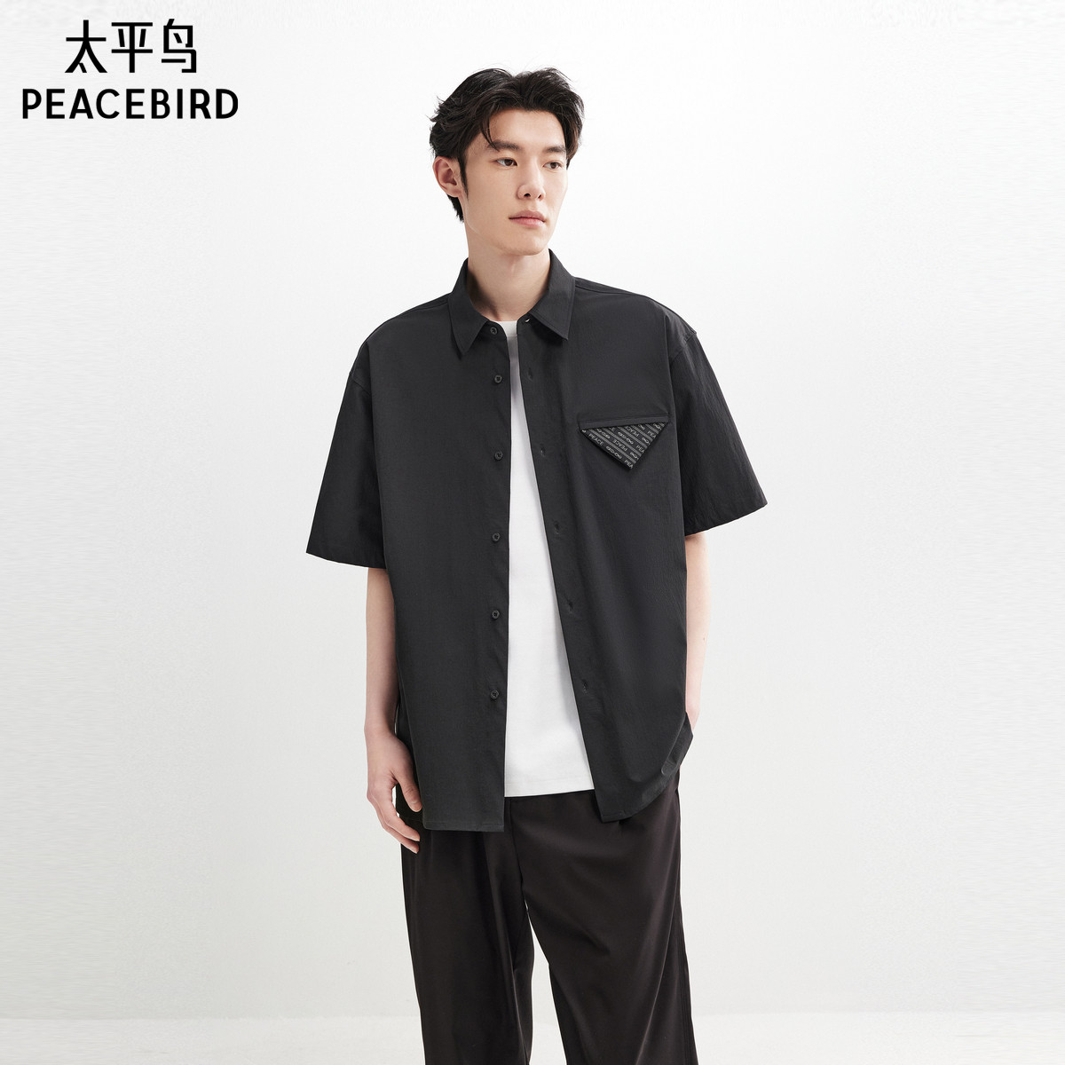 太平鸟男装 休闲衬衫2025夏季新款肌理宽松衬衫男衬衣工装衬衫潮