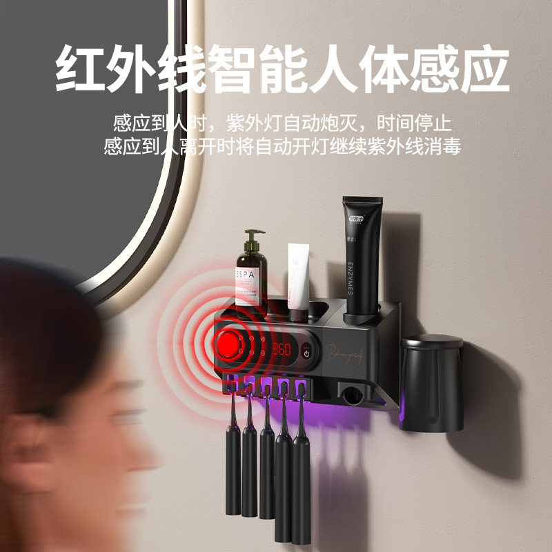 紫外线牙刷消毒器智能电动多功能杀菌消毒烘干免打孔卫生间置物架