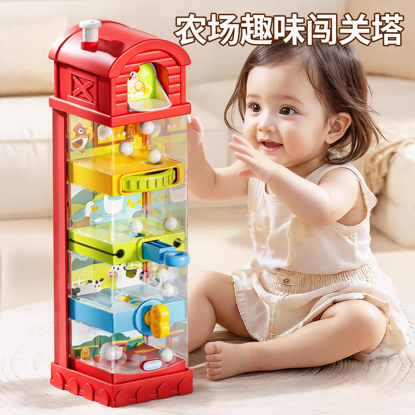 宝宝蒙氏启蒙早教益智因果关系玩具婴儿童1一3岁开关农场闯关抬头