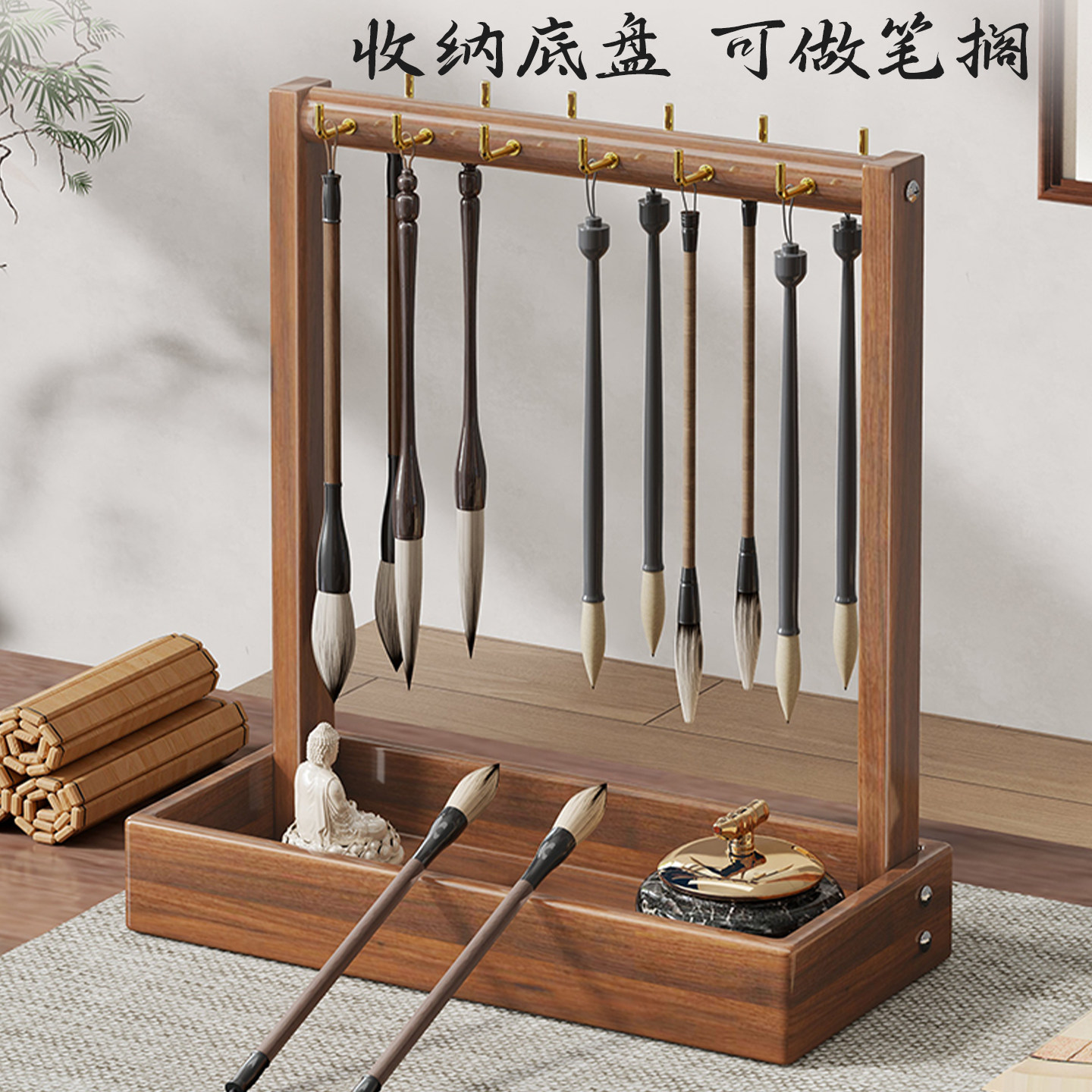 学生毛笔收纳挂架家用书法用品置物架文房四宝储物架书房桌面摆件
