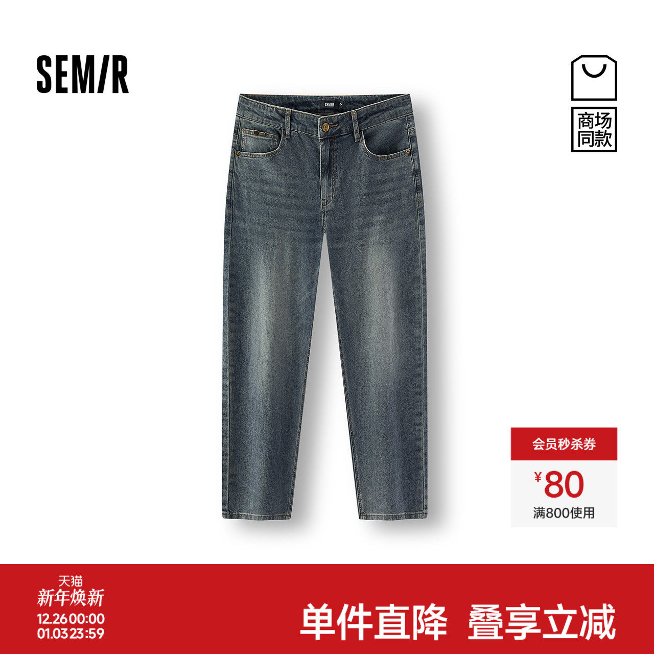 森柔牛仔森马牛仔裤男裤子新款中蓝潮宽松直筒裤子男复古百搭猫须