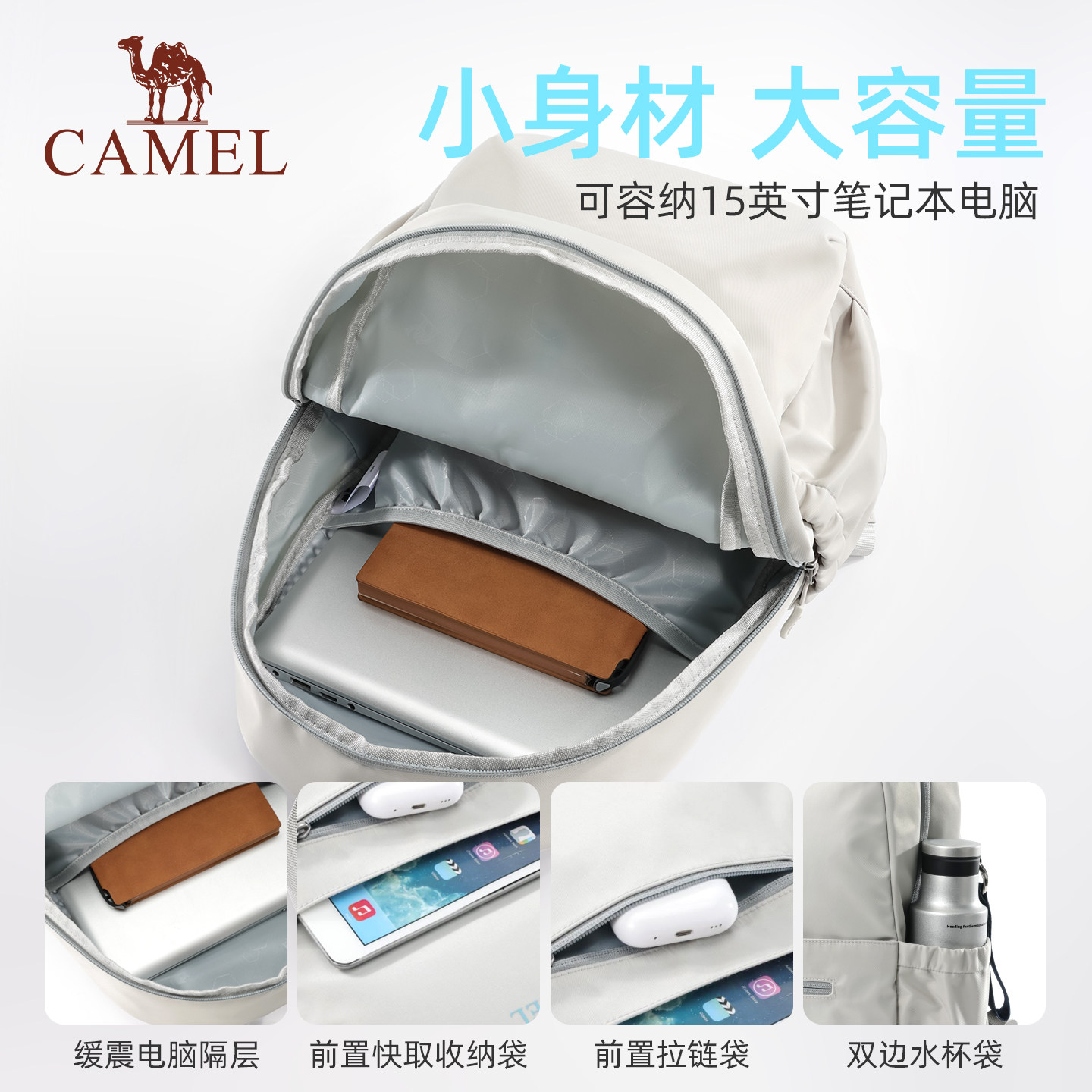 骆驼大学生书包双肩包女旅游轻便2025新款上课通勤电脑包小背包男