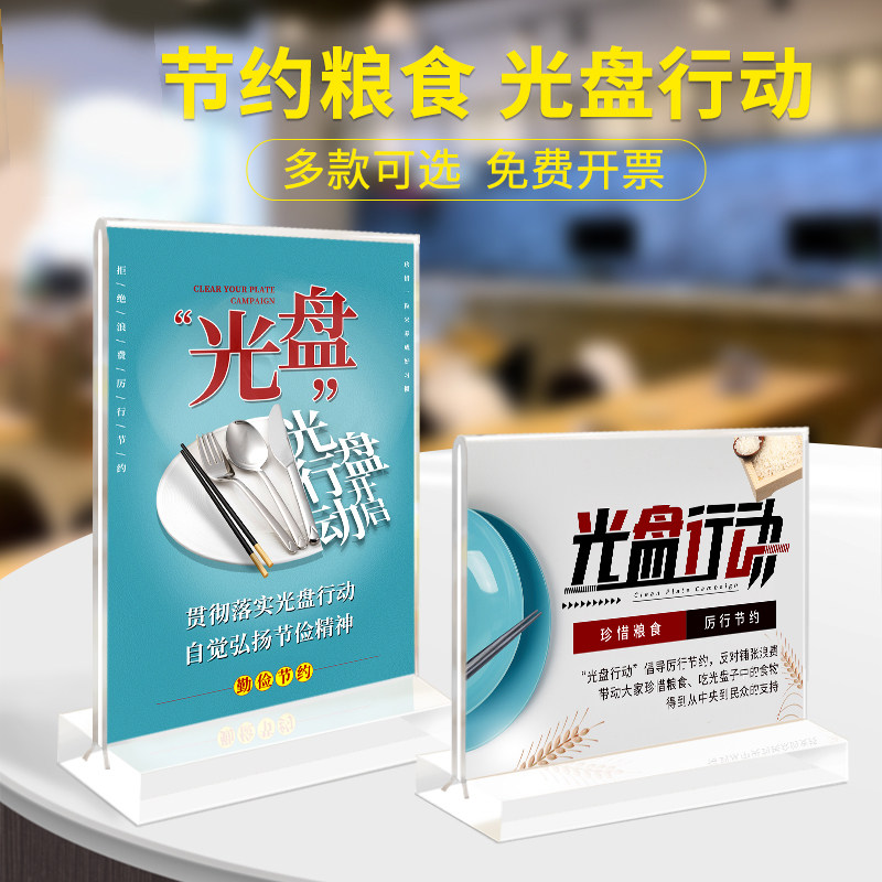 光盘行动从我做起珍惜节约粮食按需取量杜绝浪费提示牌亚克力标识牌酒店学校食堂餐厅自助餐台卡桌牌标识牌