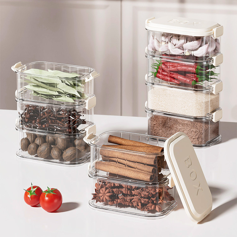 香料收纳盒厨房家用食品级花椒大料佐料干货分格调料盒防潮密封罐