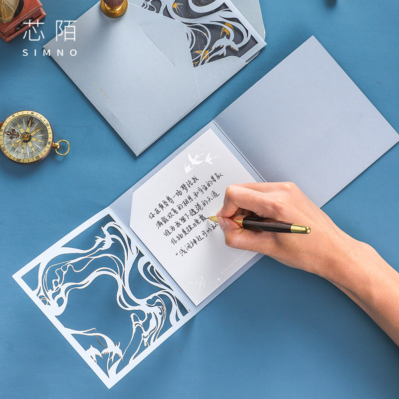 芯陌高档缕空贺卡生日留言白卡片纸小3折叠简约手工ins风创意情侣感谢信高端定制感恩教师节原创设计情人礼品
