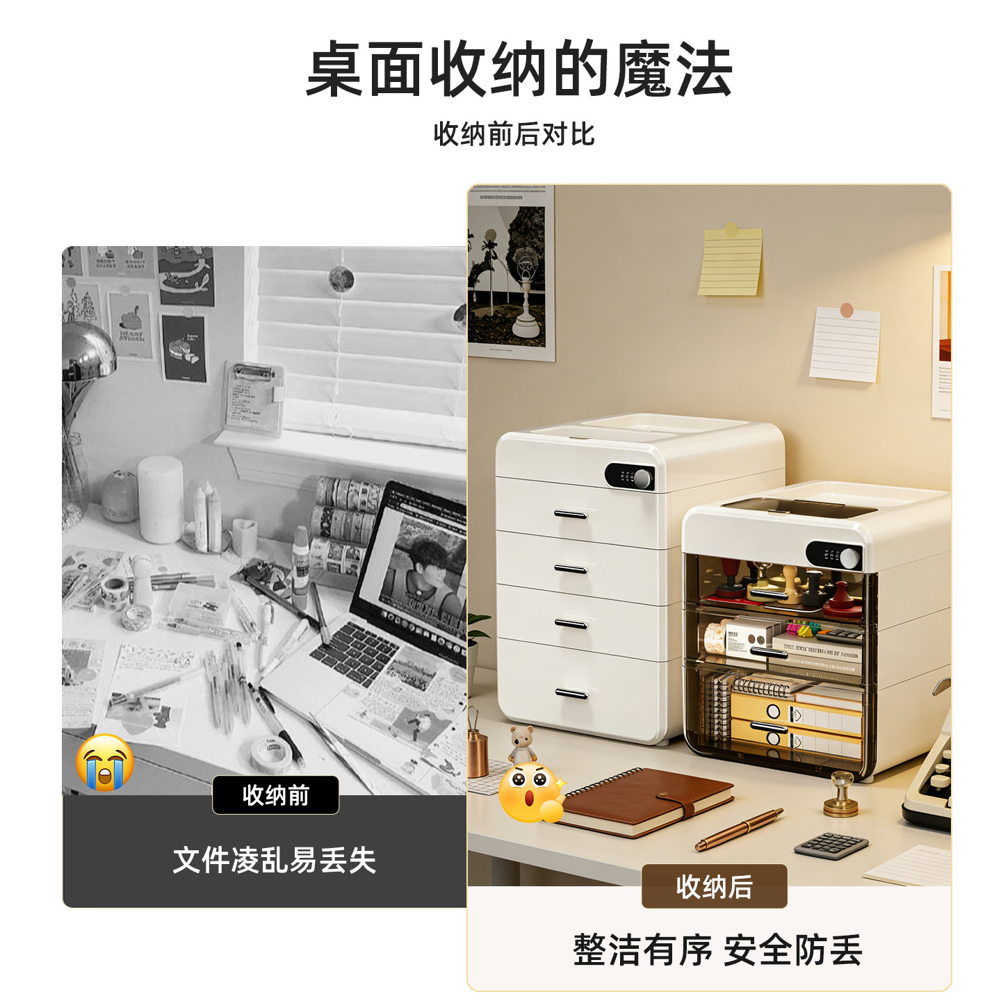 密码桌面收纳盒抽屉式办公室A4文件隐私收纳柜贵重物品带锁储物箱