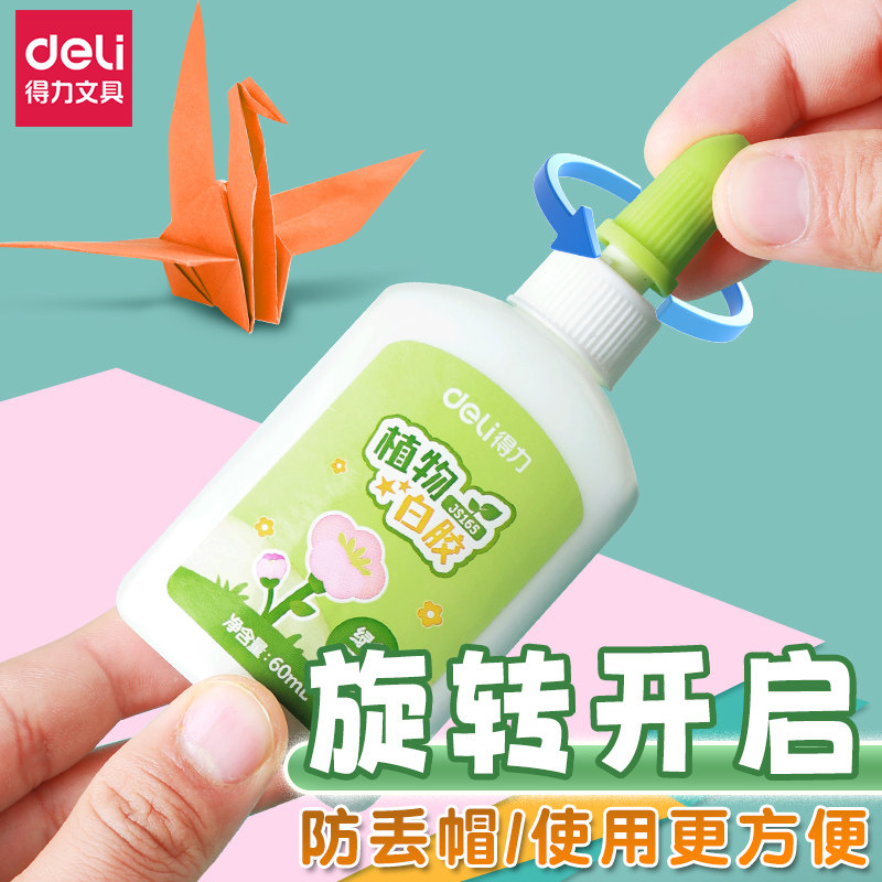 得力植物白胶旋转式挤压无毒胶水儿童手工制作专用可洗学生胶水