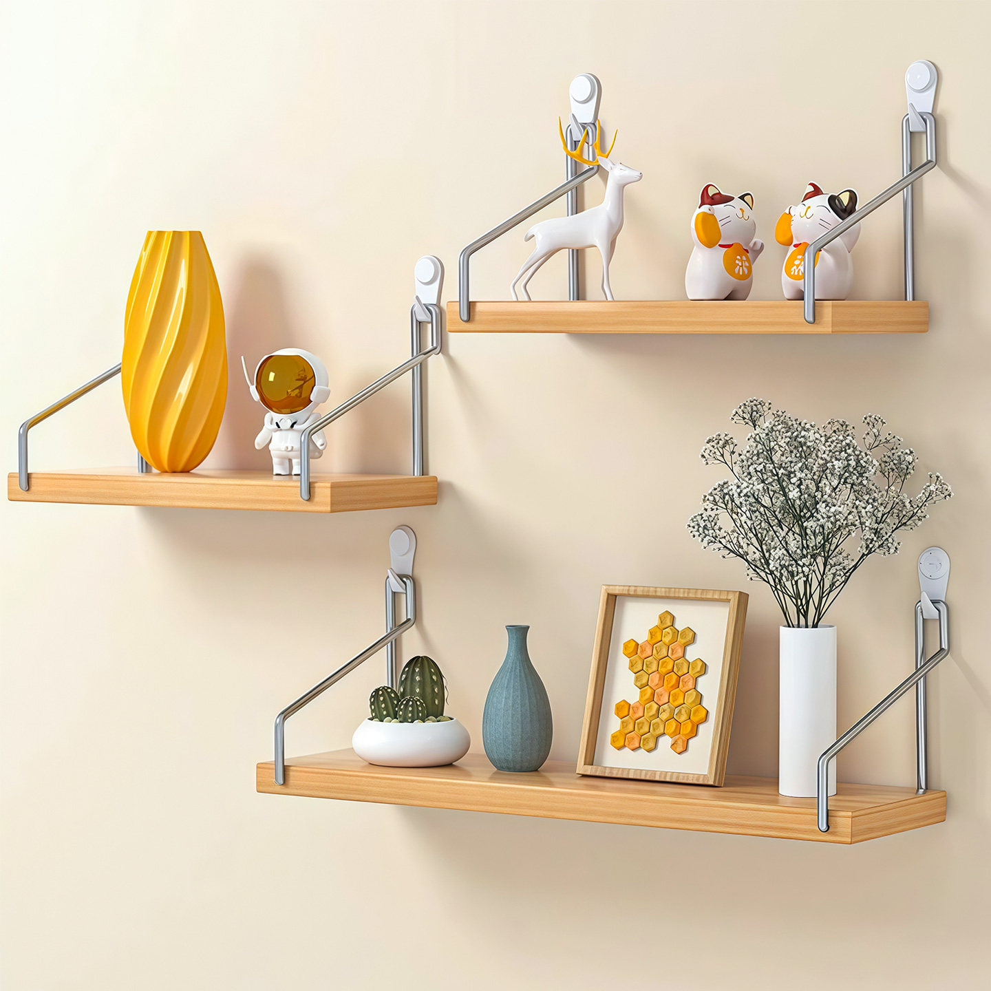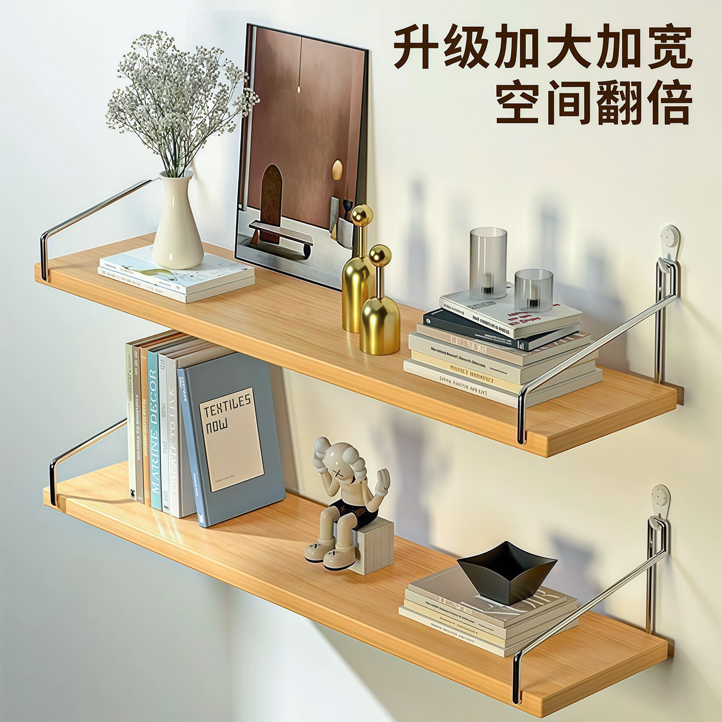 墙上置物架一字板床头置物板墙壁支撑架子木板隔板壁挂式客厅书架