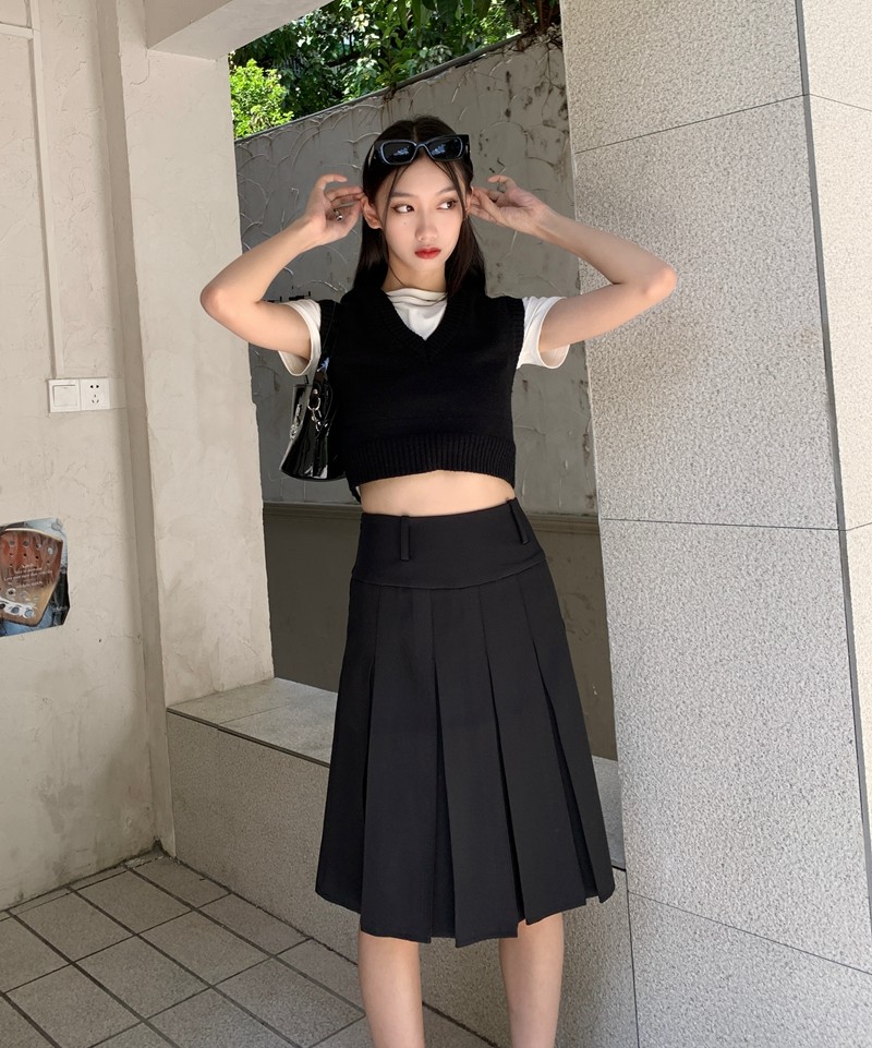 百褶裙女小个子夏季新款高腰显瘦半身裙纯色大码学院风jk短裙套装