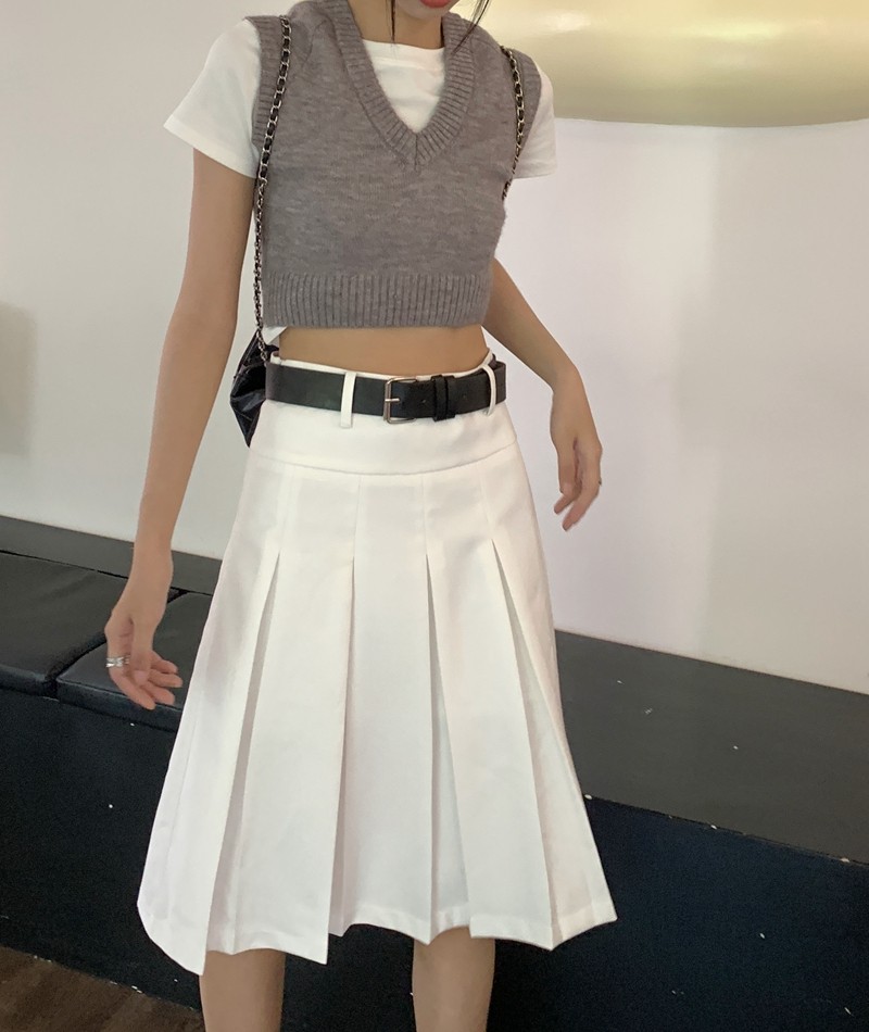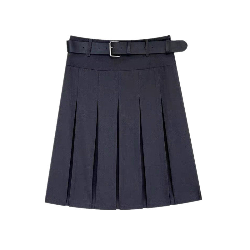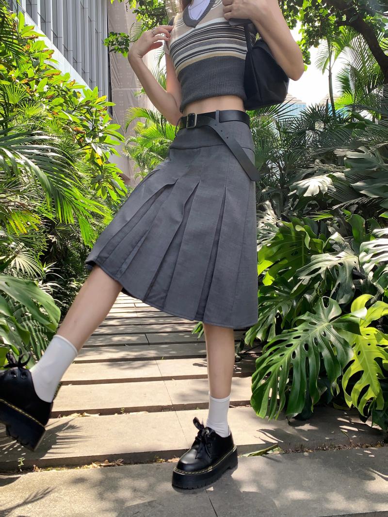 大码高腰学院风西装百褶裙女灰色中长款秋显瘦设计感a字裙半身裙