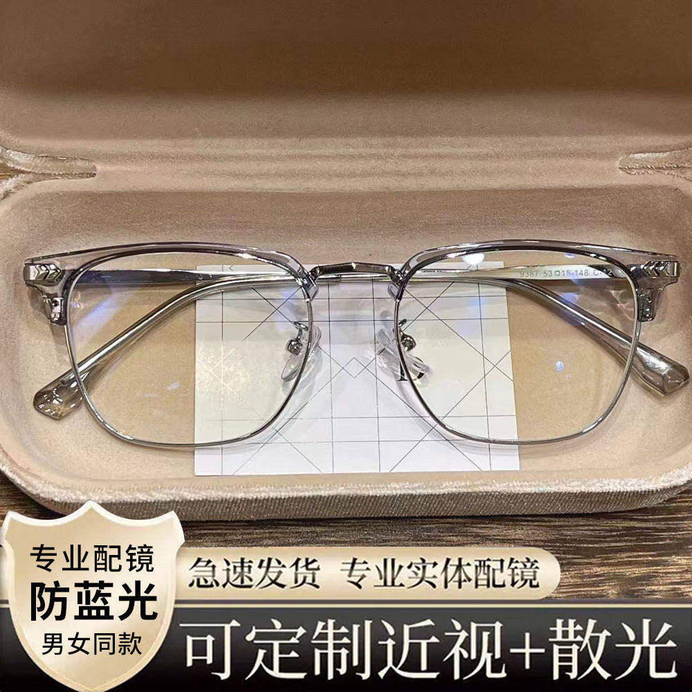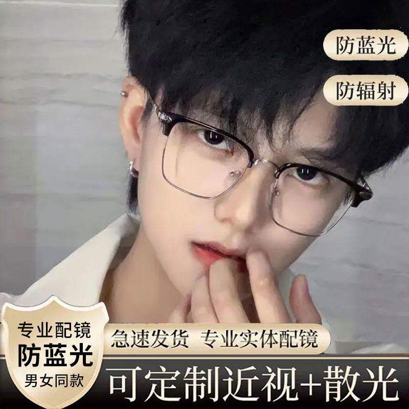 金属半框近视眼镜男款学院风斯文痞帅眼镜可配度数散光高清防蓝光