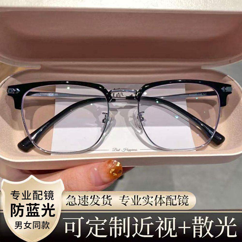 日本进口钛材防蓝光抗辐射近视眼镜女护眼无度数配平光眼睛男变色