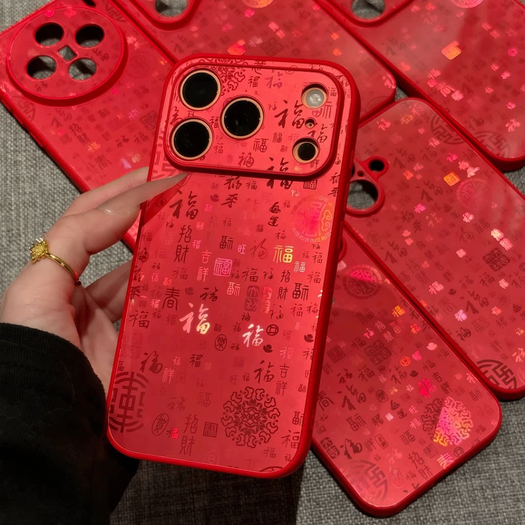 新年镭射百福图适用iPhone16/17Promax手机壳15/14/13Pro电镀暴款
