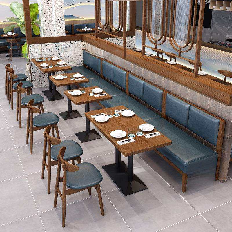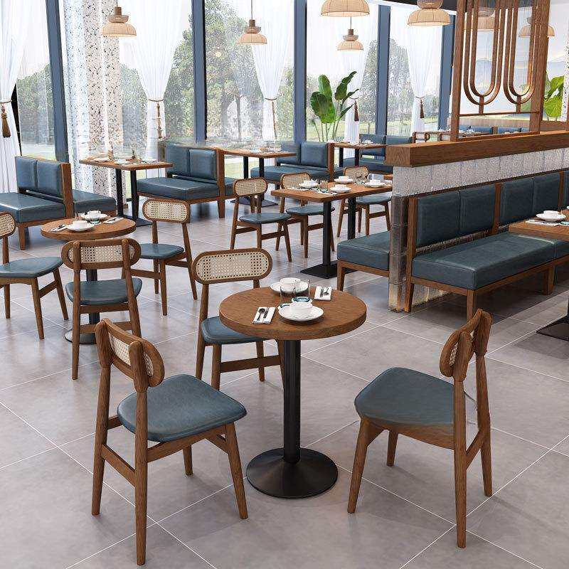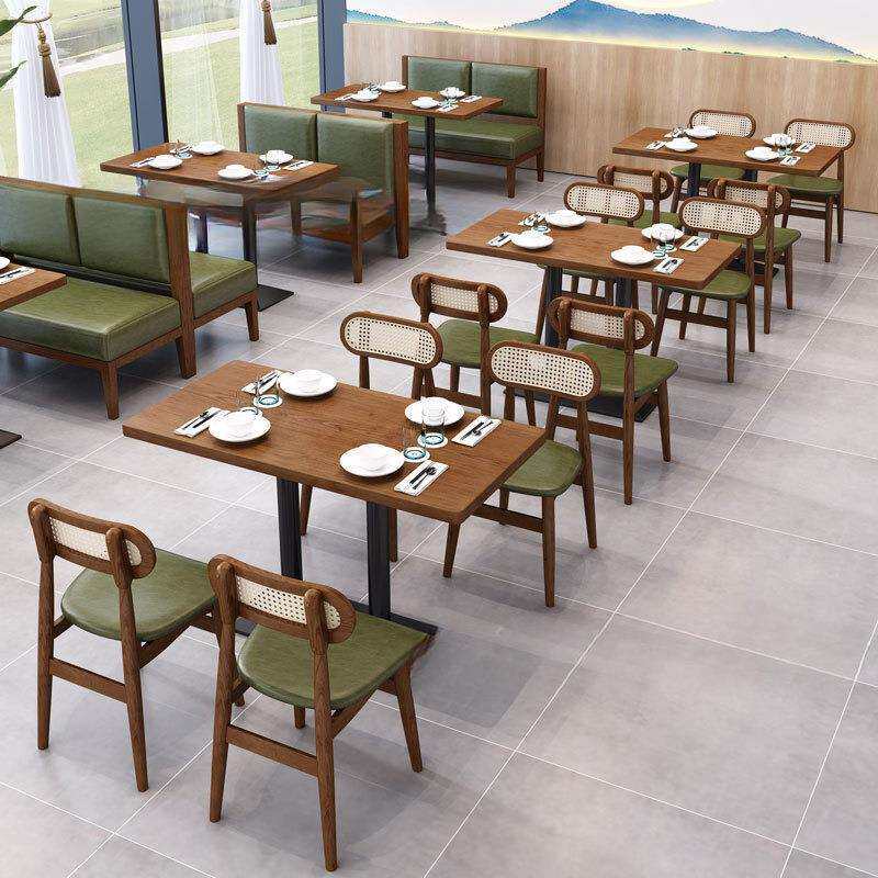 西餐厅实木编藤桌椅中式连锁快餐店东南亚咖啡厅卡座沙发桌椅组合