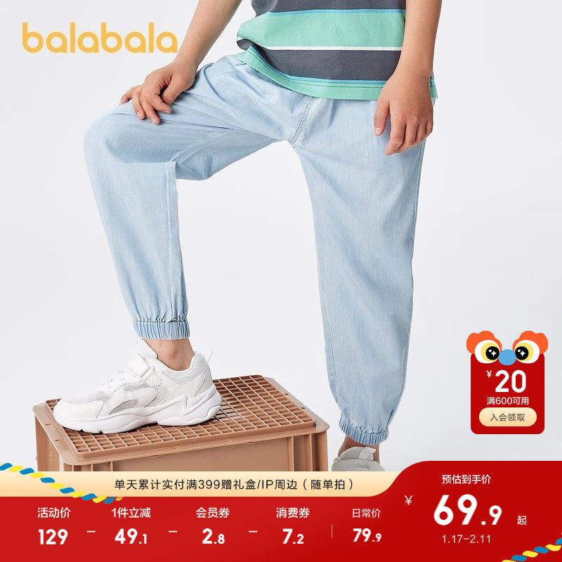 巴拉巴拉童装男童裤子儿童牛仔裤春夏装防蚊薄款大童天丝牛仔束脚