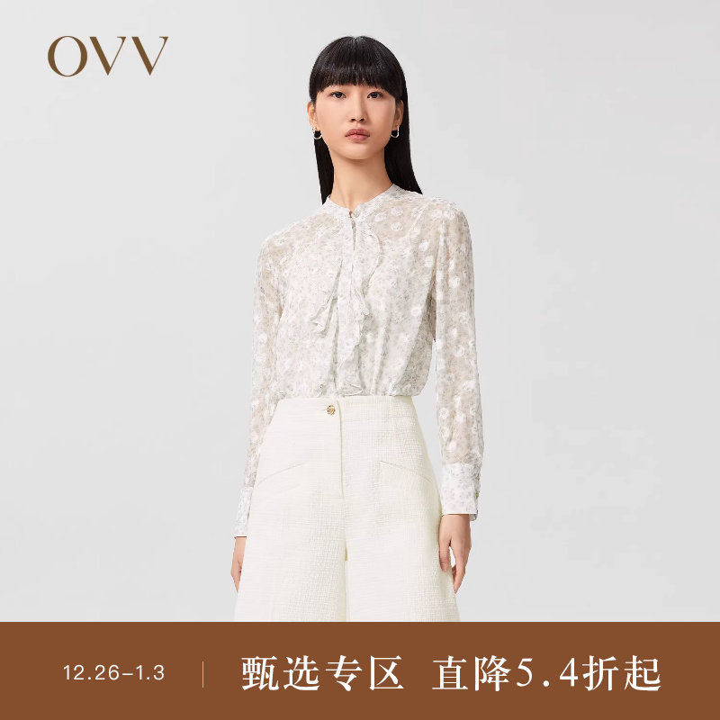 【小雏菊印花】OVV春夏热卖女装立领荷叶边轻盈长袖衬衫