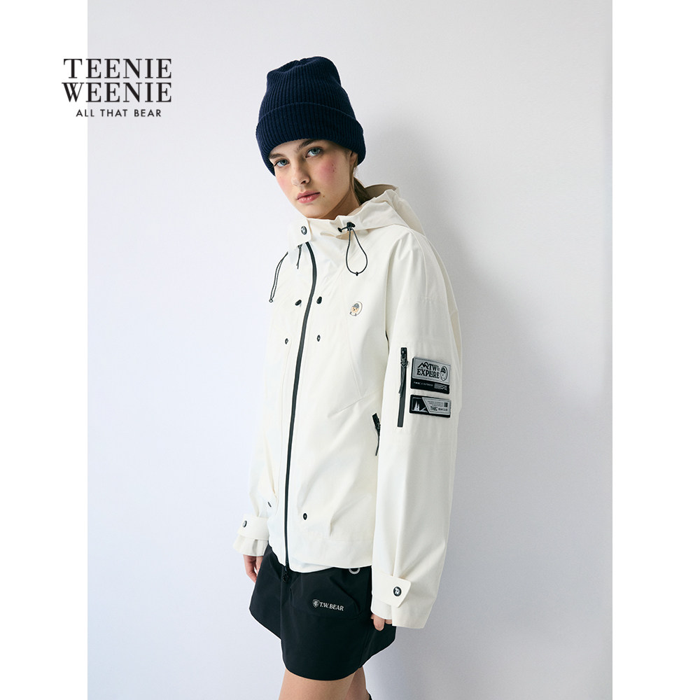 【双栖彩壳】TeenieWeenie小熊女外套25冬户外简约大方白色上衣
