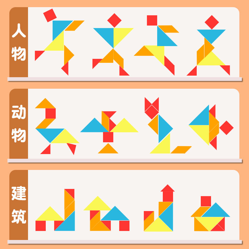 七巧板8.8cm七巧板小学生用图形拼板小学数学二年级智力拼图教具