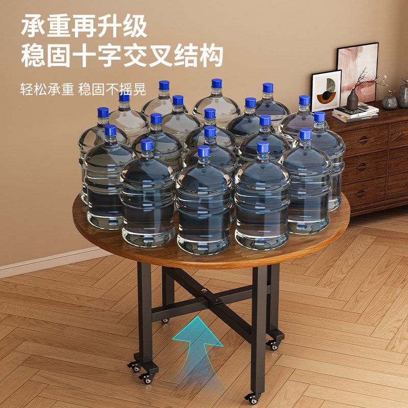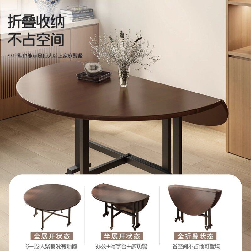 折叠餐桌家用饭桌小户型实木桌转盘移动收纳可折叠圆桌餐厅阳台