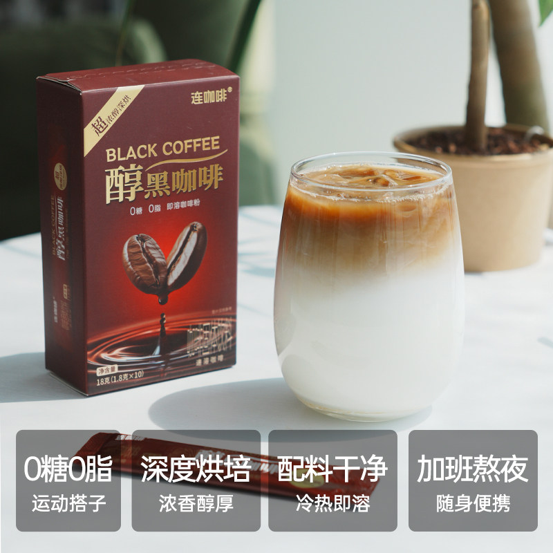 连咖啡 超浓醇深烘醇黑咖啡 0糖0脂 1.8克x10条