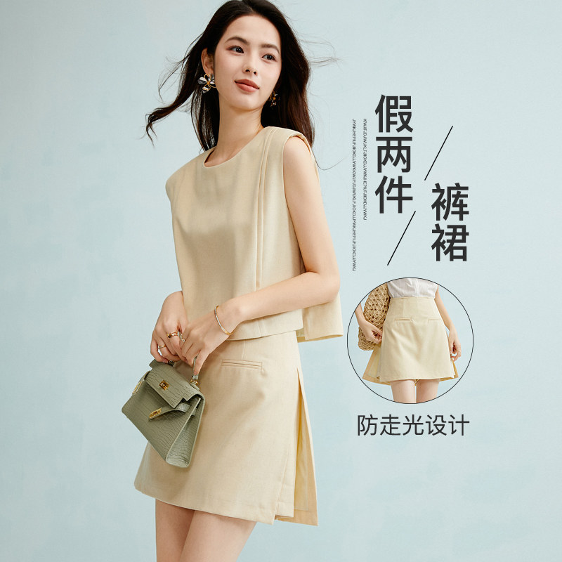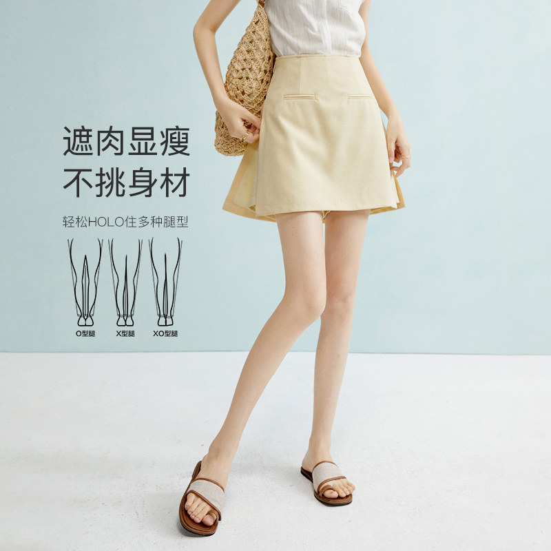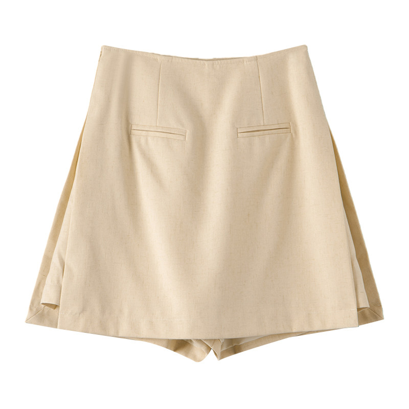 晚白2026年春新款时尚简约含麻高腰裙裤修身显瘦气质百搭短裤女