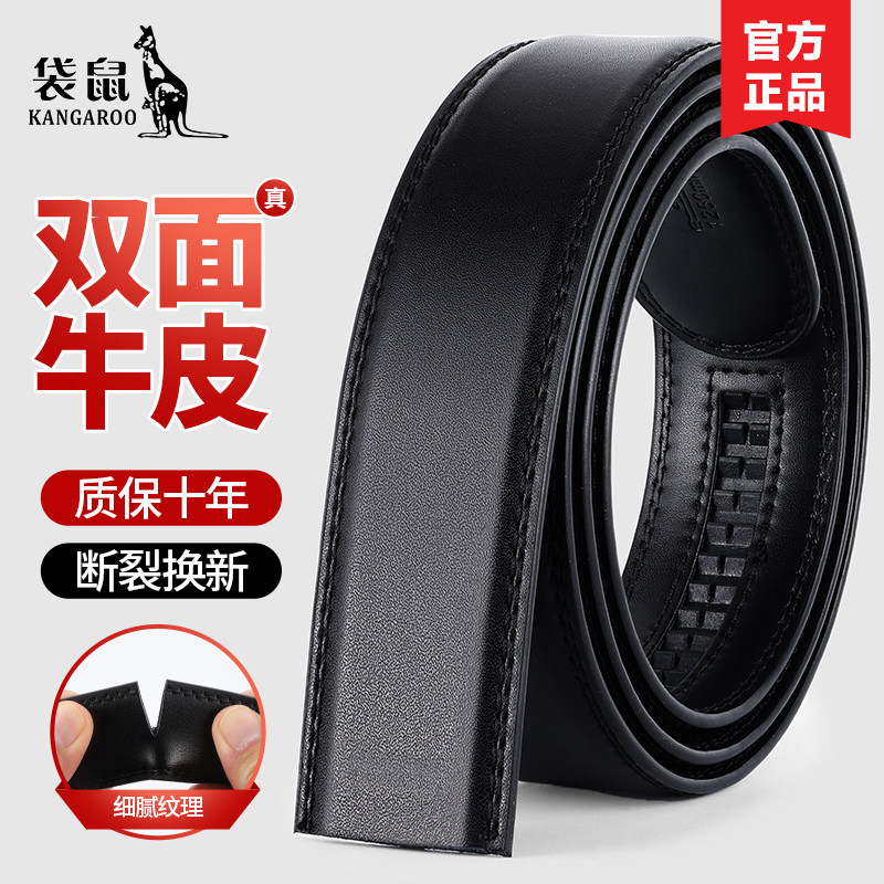袋鼠皮带无头男士真皮自动扣牛皮不带头腰带无扣头带身男款裤带条
