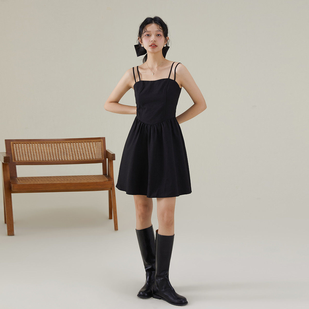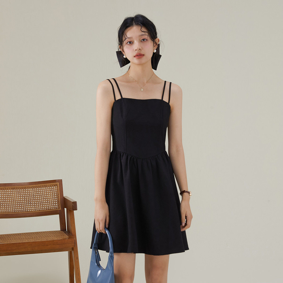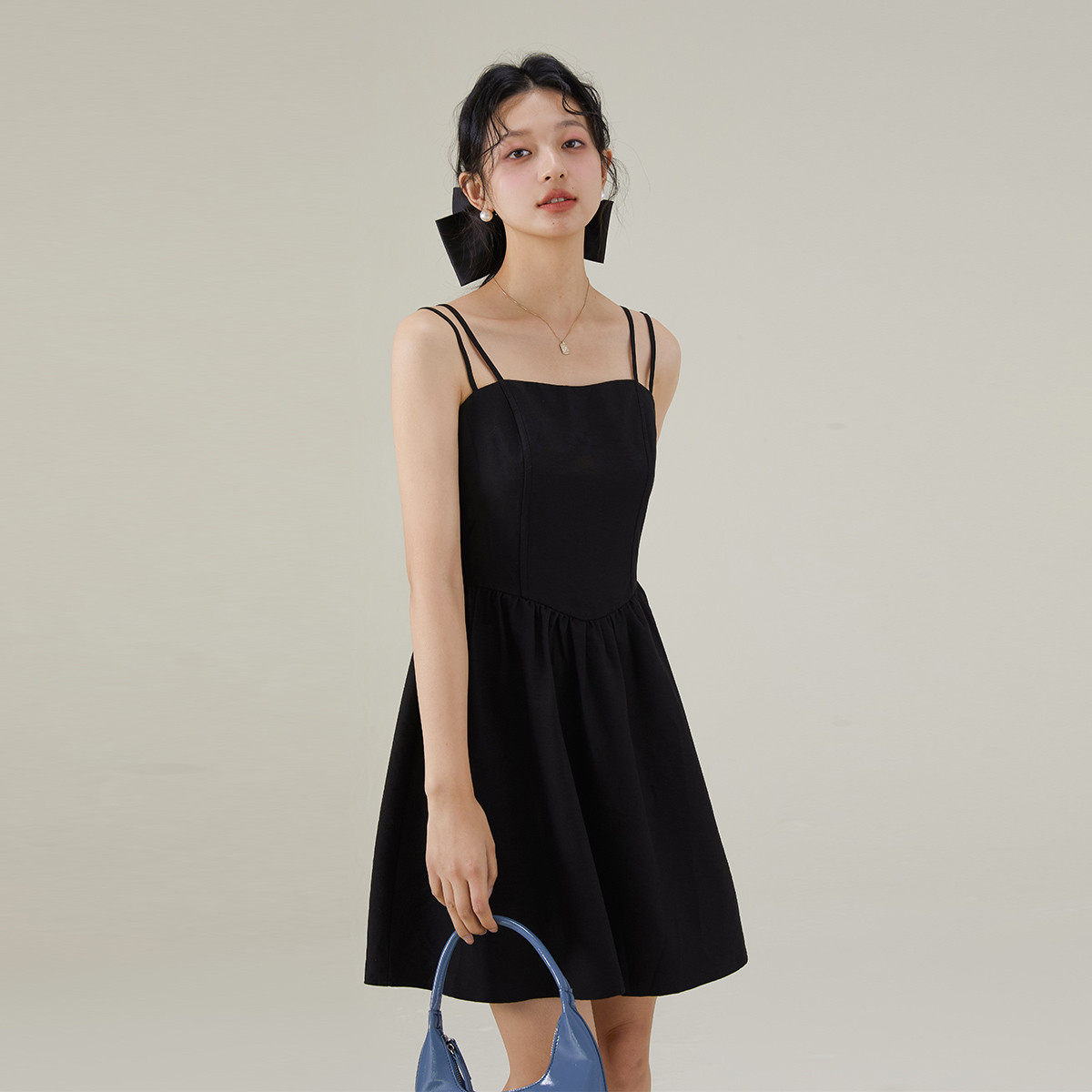 【时尚夏季】打底小黑裙小个子吊带连衣裙女年会礼服短裙显瘦裙子
