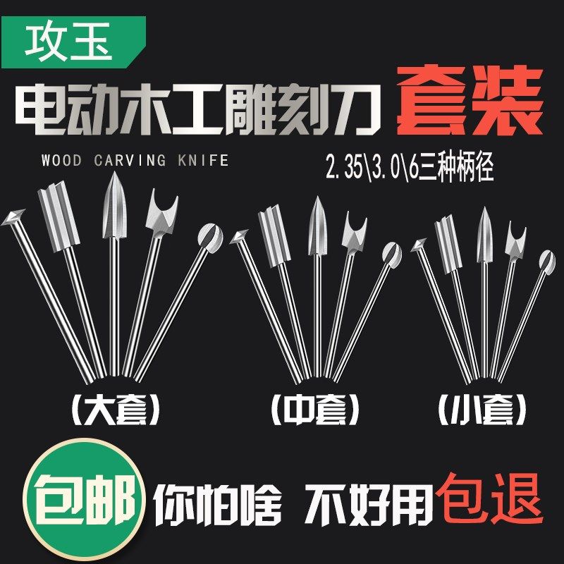 雕刻刀木工电动铣刀木雕打磨工具套装根雕核雕牙机电磨高速钻专用