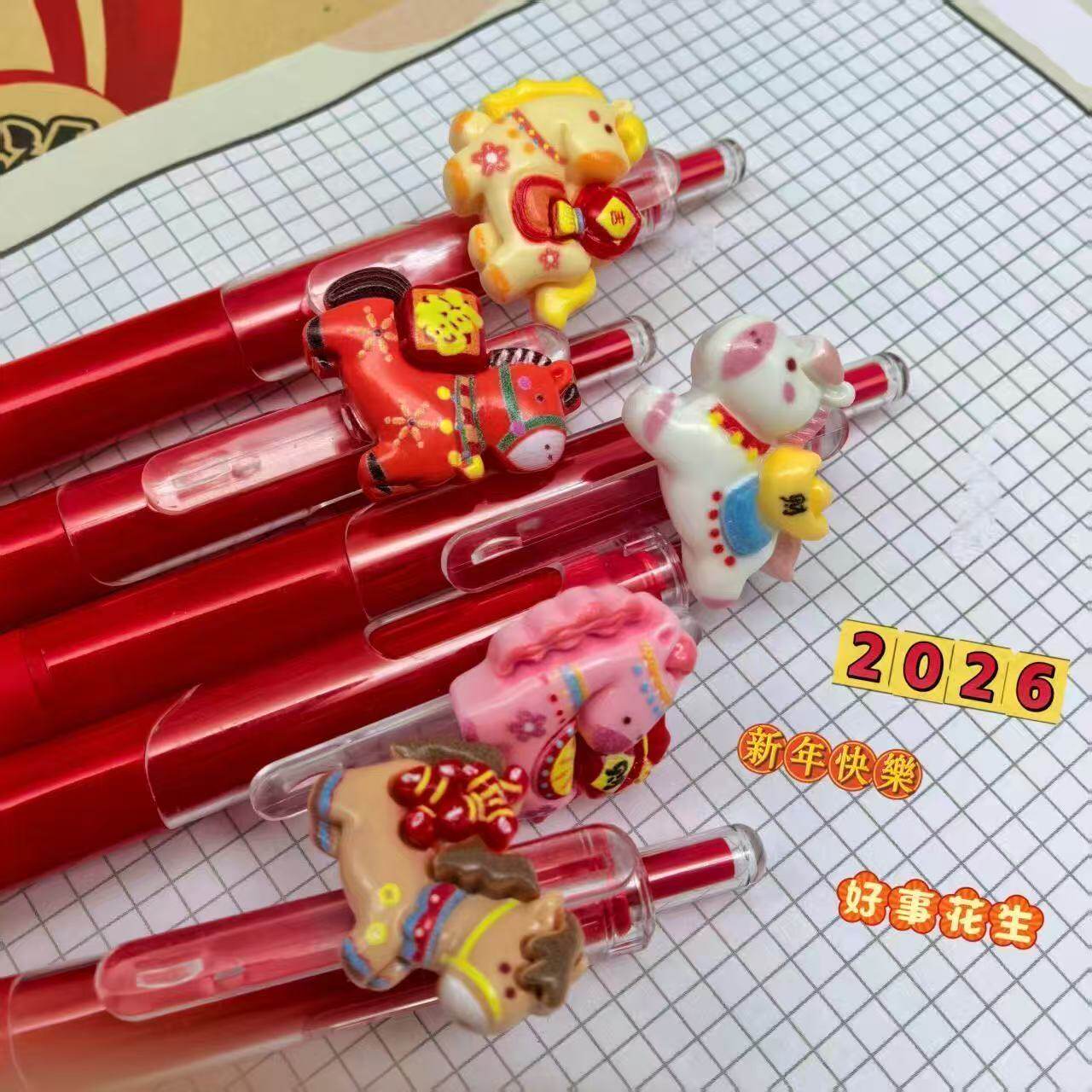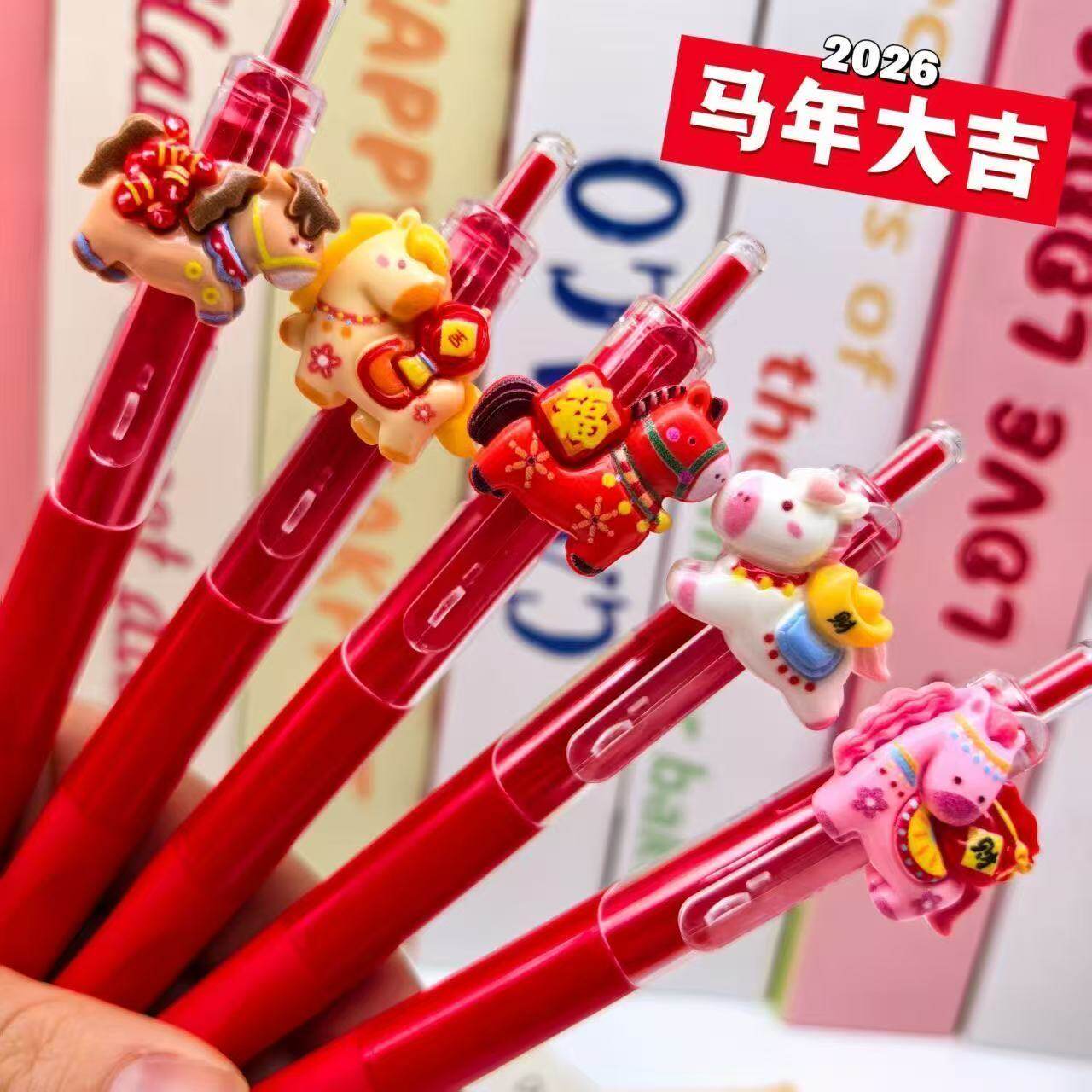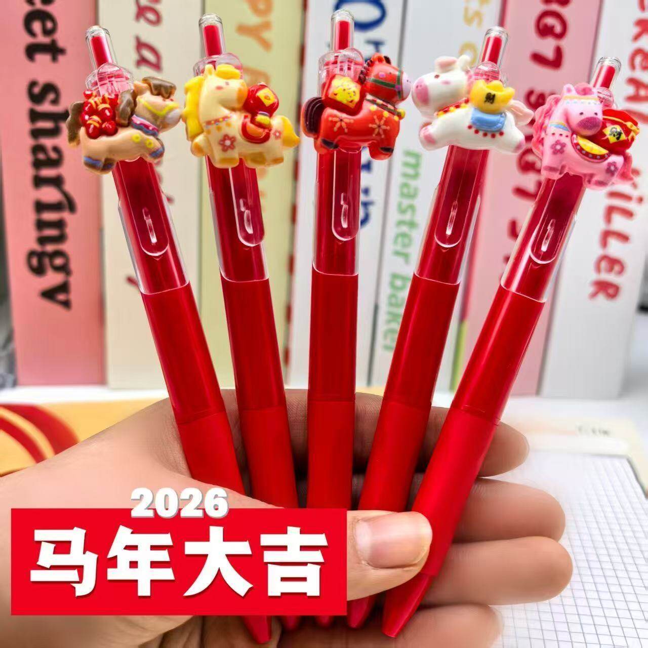 新款可爱马年寓意按动红笔中性笔卡通学生作业神奇老师红色笔0.5