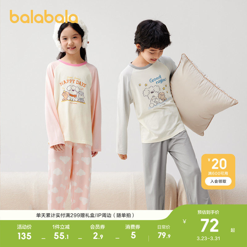 巴拉巴拉童装儿童睡衣套装春秋新款家居服宝宝男童女童亲子装