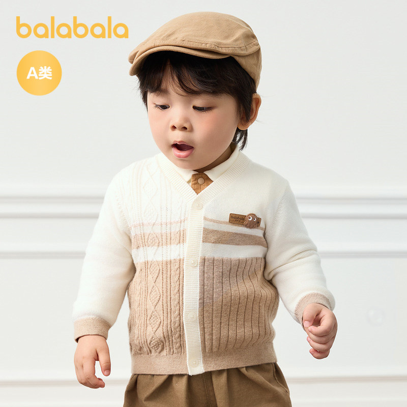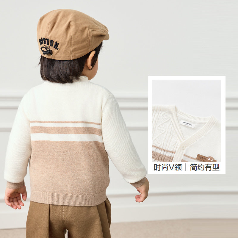 巴拉巴拉宝宝毛衣婴儿针织衫薄开衫男童秋装撞色设计时尚气质洋气
