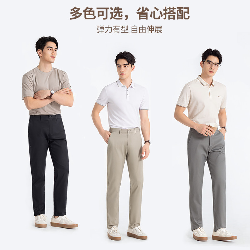 雪中飞天丝棉男士休闲裤中青年高端弹力直筒西装长裤夏季薄款男裤