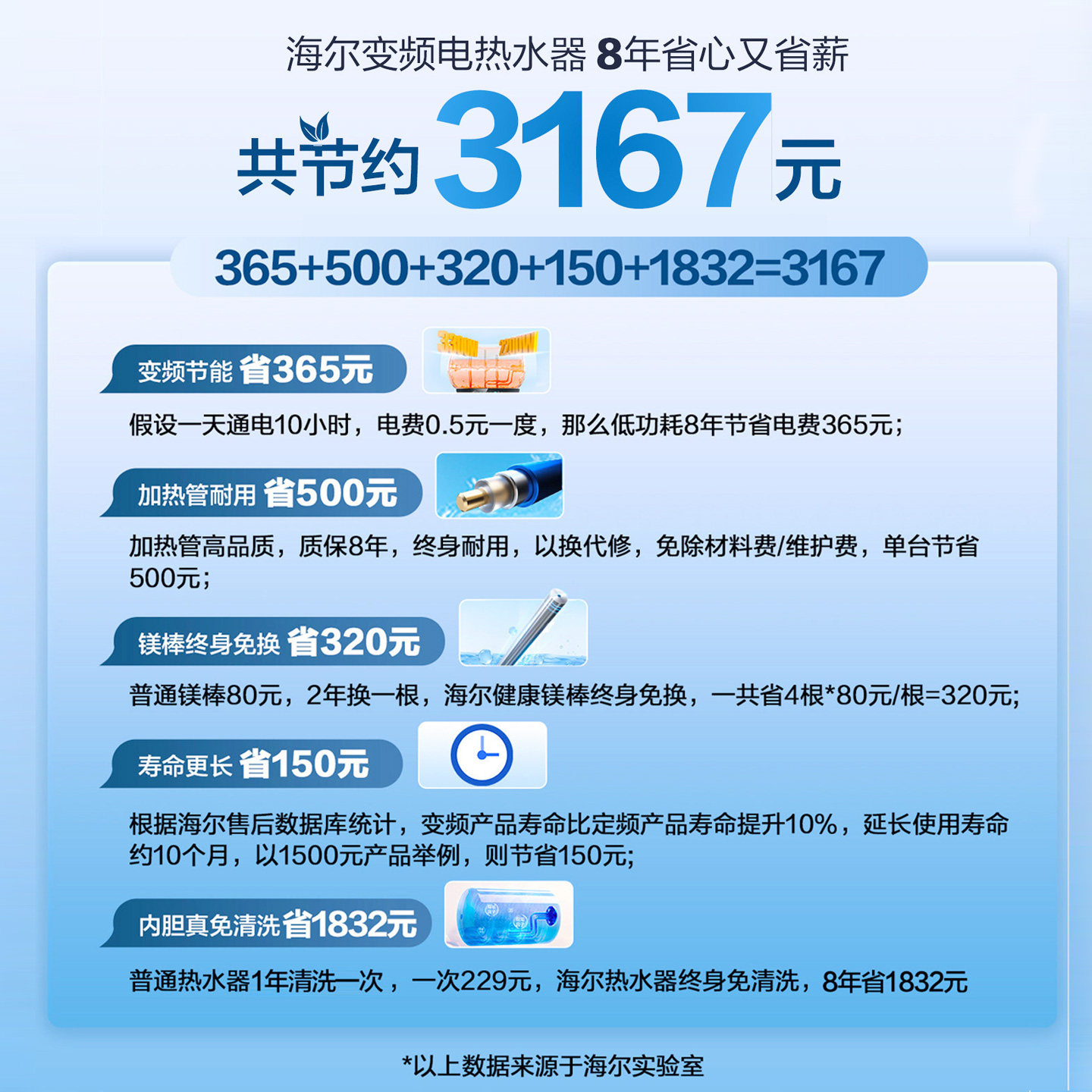 以旧换新补贴海尔电热水器家用60升洗澡统帅一级能效变频节能速热