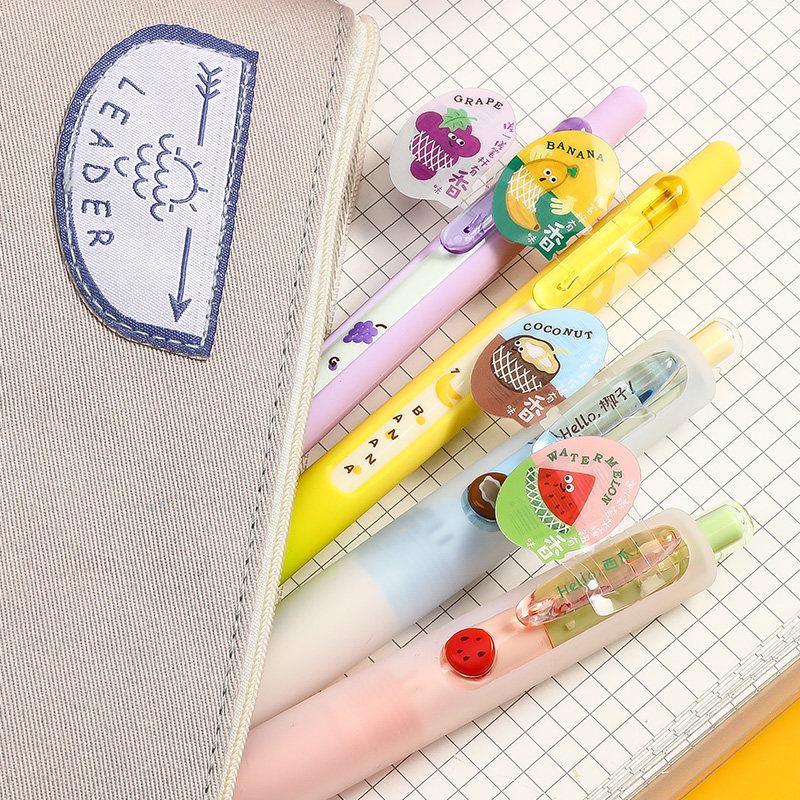 晨光按动中性笔开心剥剥乐香味笔胖瘦联盟可爱卡通造型创意学生用黑色速干刷题笔高颜值解压日常书写0.5mm