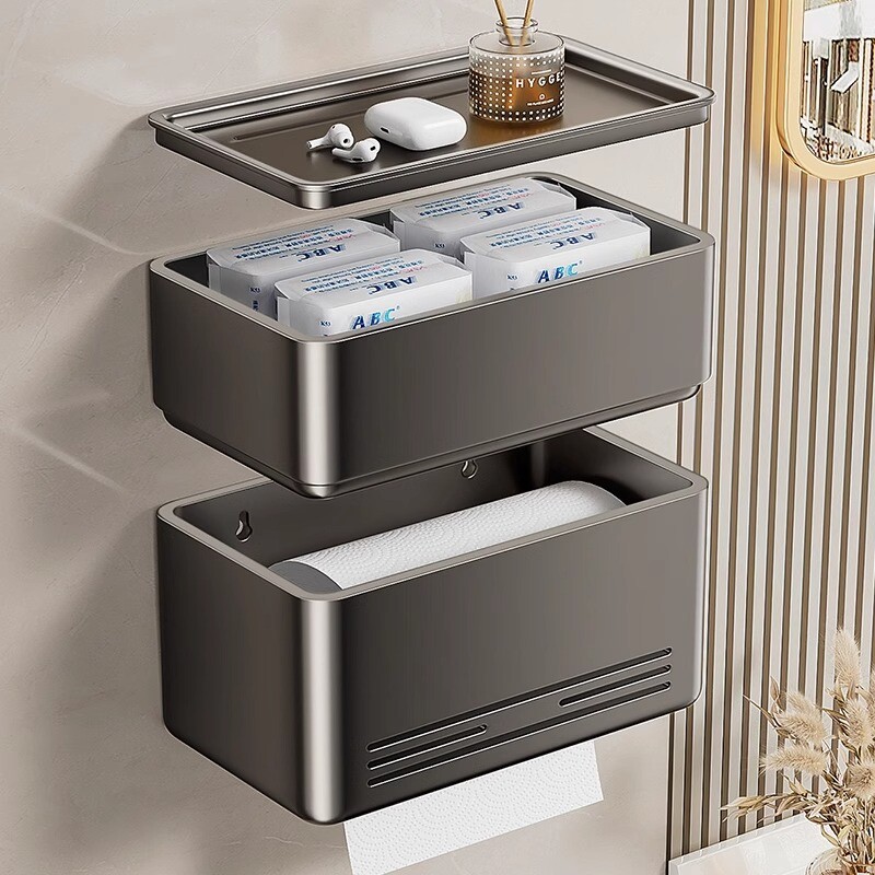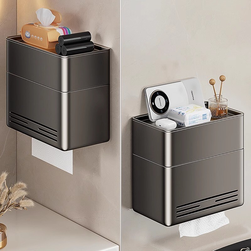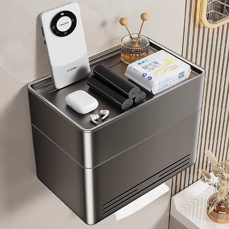 卫生间厕纸盒壁挂式免打孔厕所防水纸巾盒卷纸架放置盒太空铝浴室