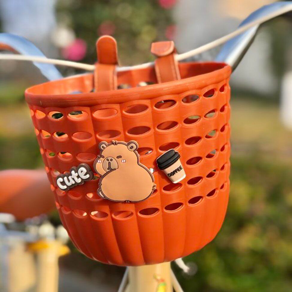 儿童自行车车筐玩偶卡通车篮童车塑料编织前车筐篓单车遛娃神器